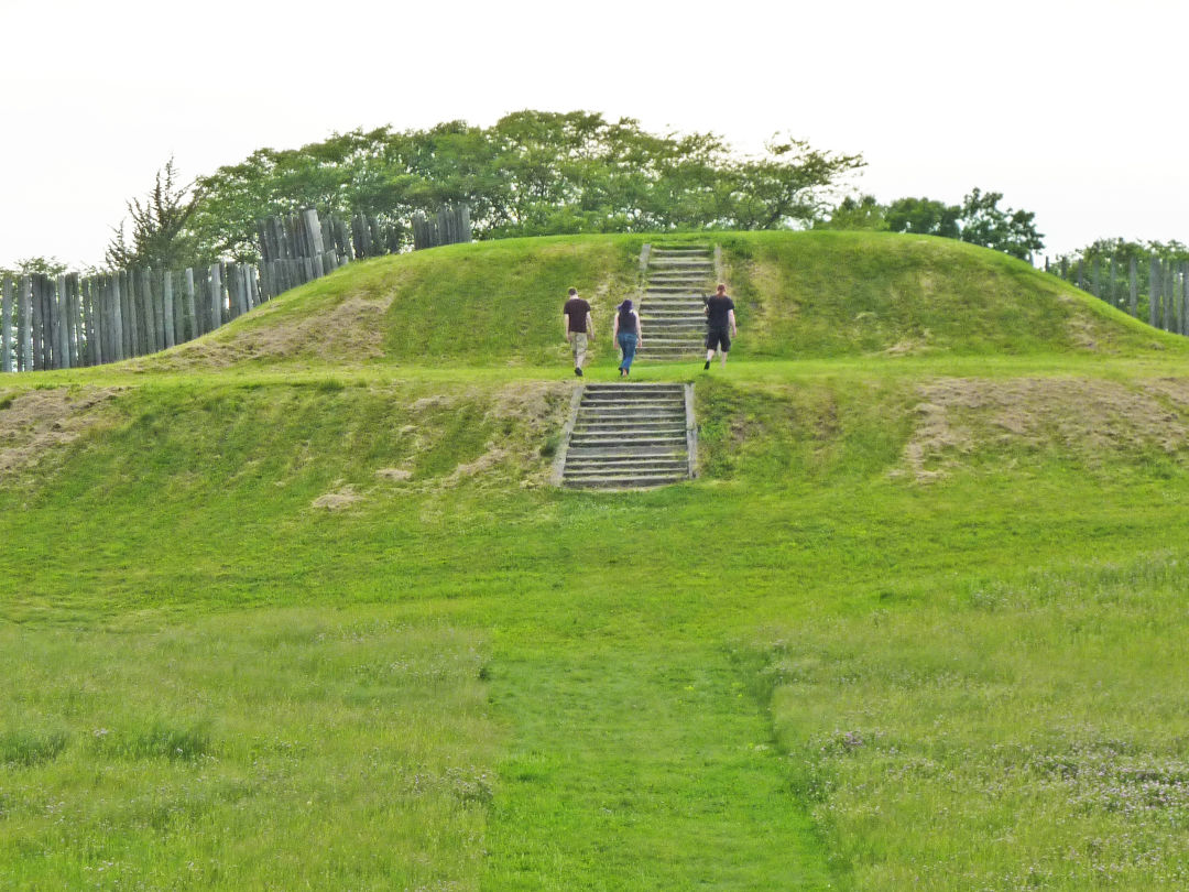 Aztalan State Park is a Wisconsin state park in the Town of Aztalan, Jefferson County. Established in 1952, it was designated a National Historic Landmark in 1964 and added to the National Register of Historic Places in 1966. The park covers 172 acres (70 ha) along the Crawfish River. Approximate areas of Mississippian and related cultures. Aztalan is in the Oneota region of the map. Aztalan is the site of an ancient Mississippian culture settlement that flourished during the 10th to 13th centuries. The indigenous people constructed massive earthwork mounds for religious and political purposes. They were part of a widespread culture with important settlements throughout the Mississippi River valley and its tributaries. Their trading network extended from the Great Lakes to the Gulf Coast, and into the Southeast of the present-day United States.